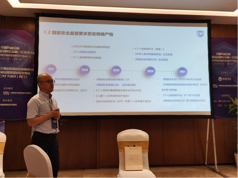 宋苑副主任在致辞中表示,科技创新和产业发展带来的海量高价值数据面临着如APT、“黑灰产业”、漏洞等各类严重威胁,因此完善数据数据安全治理日益重要。2021年颁布的《数据安全法》明确了数据安全保护的各项基本制度,为数字经济提供了有力的法律支撑。